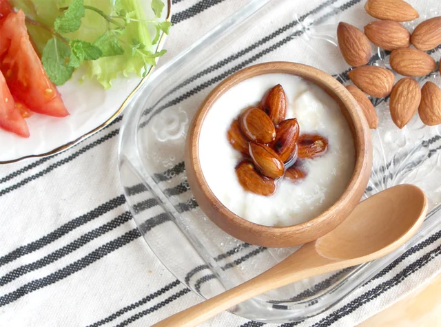 卵・納豆・牛乳などの乳製品にも豊富。朝食にとり入れれば毎日摂りやすくなります。アーモンドは素焼きのものを間食として食べてもいいですね。