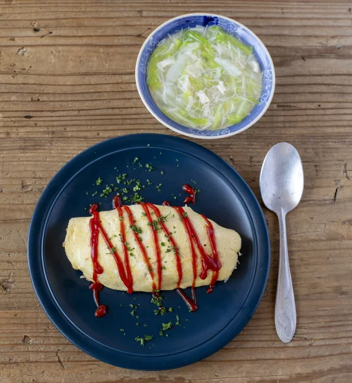 カレーライス・ハンバーグ・エビフライなどの「洋食」は、ダイエット中に食べるのを躊躇してしまいませんか?今回は野菜をたっぷり使って、全部食べても500kcal台のオムライス献立のレシピをご紹介します。