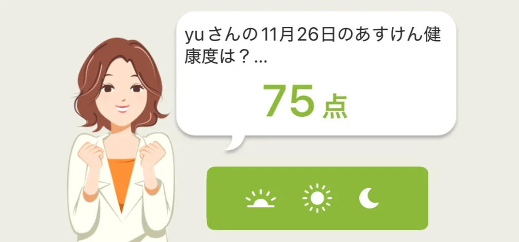 あすけんでは、独自に定めた「あすけん健康度」があり、以下の項目を総合的に判定し、点数化しています。