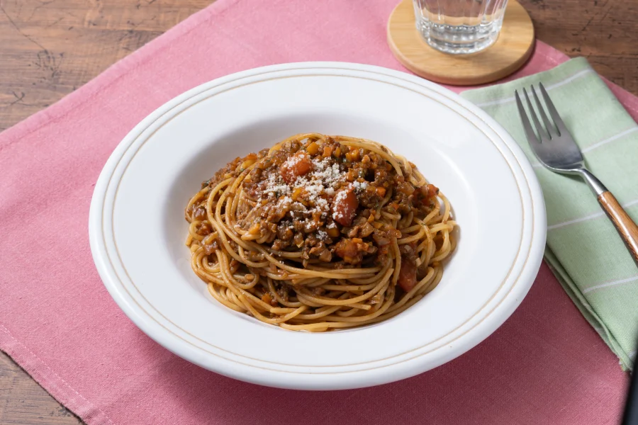 1人前で190g以上の野菜がとれるトマトミートパスタ