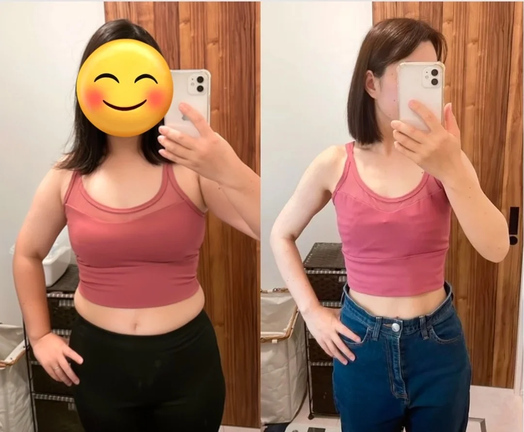太っていた時はメイクもせず、おしゃれも諦めて投げやりになっていましたが、今は自信がついたことで気持ちが前向きになりました。肉が落ちてしまったお尻もサイズアップしたので、ピタッとしたジーンズを履けるのが喜びです。今の自分のカラダに満足しています!