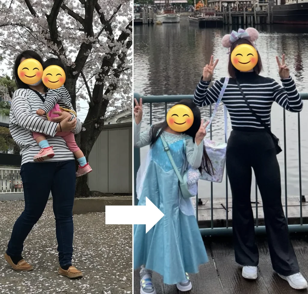 太っていた時は子どもに妊娠中と間違えられ「赤ちゃんいつ出てくるの?」と聞かれることもあったのですが(笑)、お腹がスッキリして「ママのお腹細いね!」と言ってもらえました。ママ友から「お尻がかっこいい!」と褒めてもらえたことも嬉しかったです。