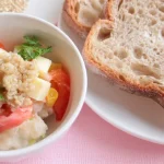 7. 耐熱容器にAを入れ、ラップをして600Wの電子レンジで1分30秒〜2分加熱する。