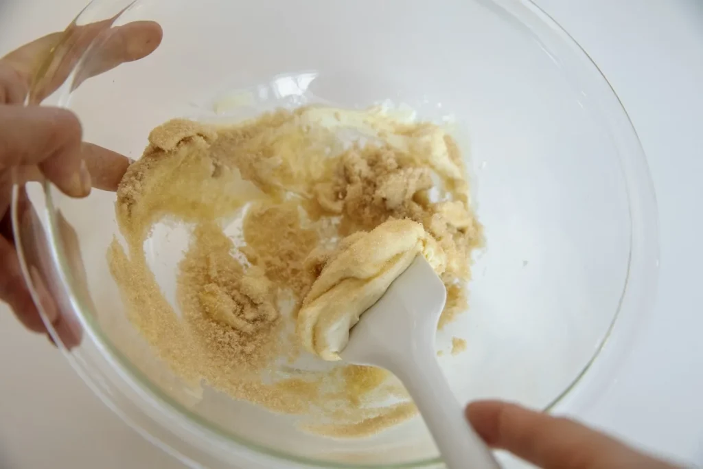 1. ボウルに常温にしたクリームチーズを入れ、ヘラでペースト状になるまで混ぜる。ラカント S 顆粒を加え、すり混ぜる。