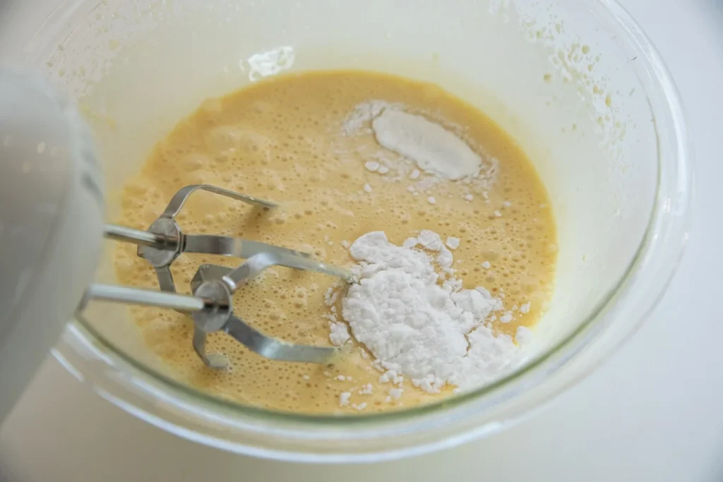 4. ベーキングパウダー、片栗粉を加え、均一になるまでさらに混ぜる。