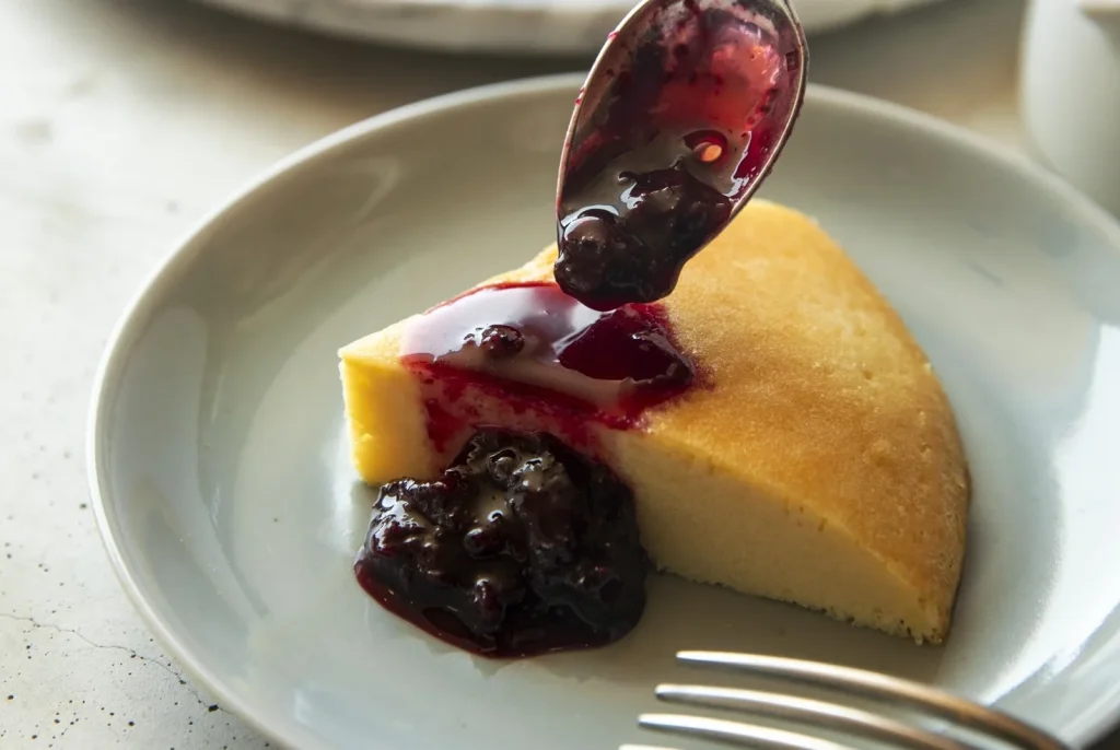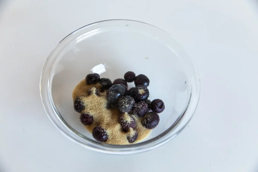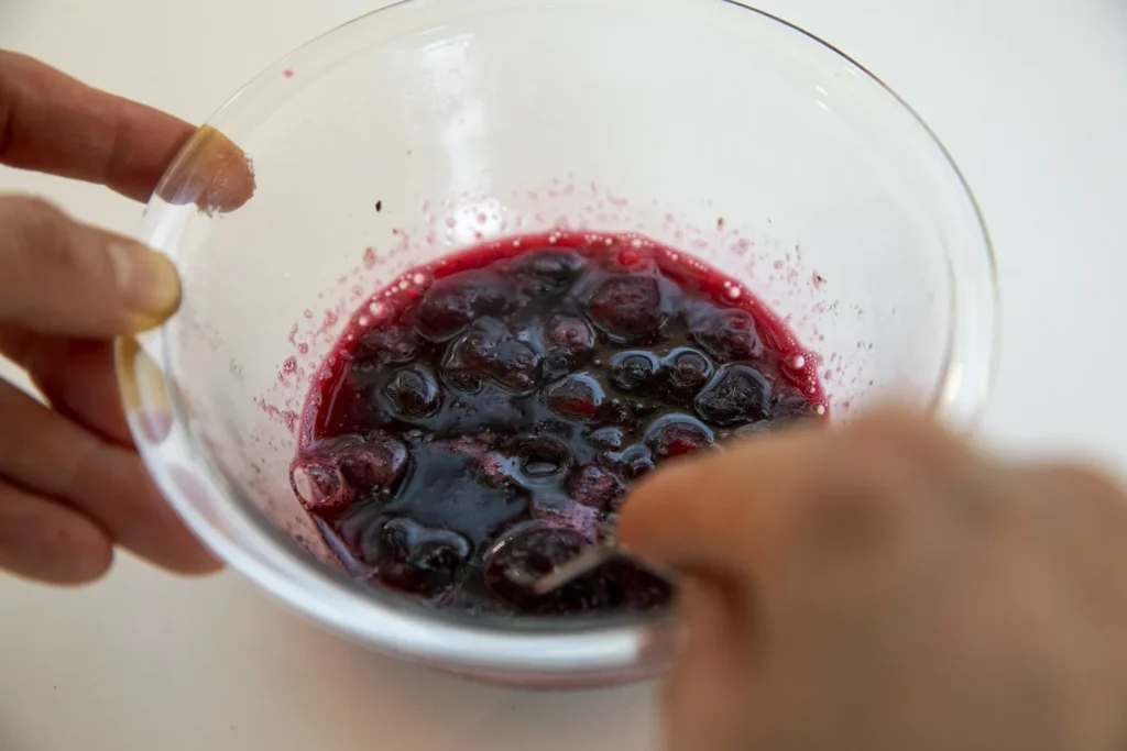 8. ブルーベリーをフォークで潰し、ラップなしで1分加熱して冷ます。