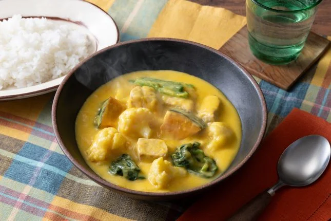 ハロウィンにぴったり♪かぼちゃとカリフラワーのクリームシチュー【あすけん栄養士監修レシピ】