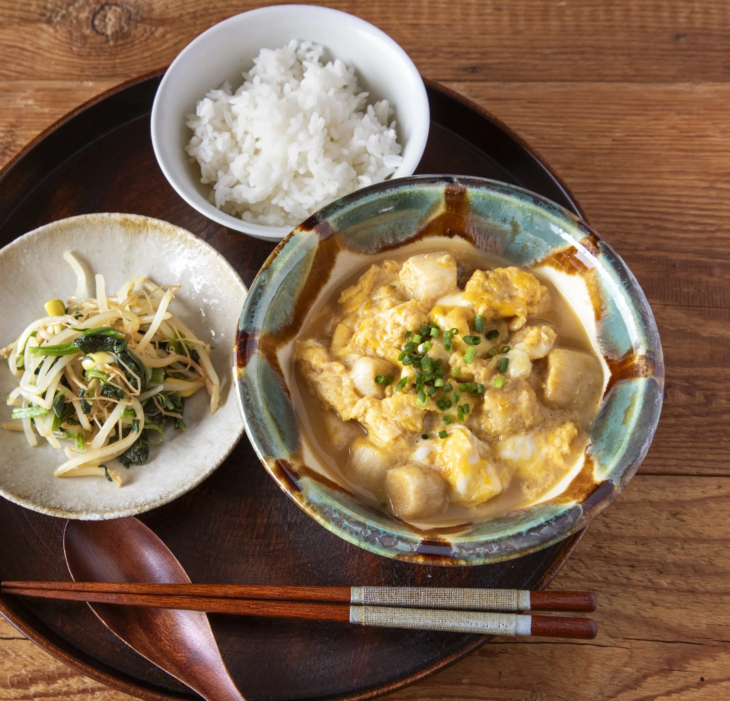3. 2に1を加えて再度沸騰したら、溶き卵をまわし入れて火を通す。