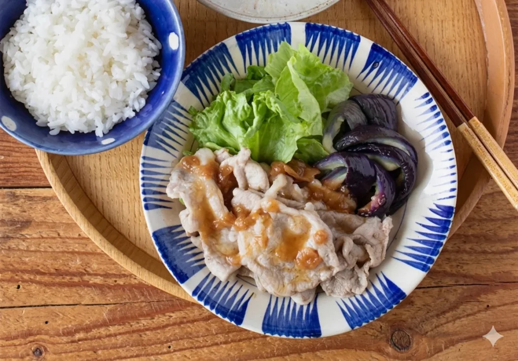 豚肉と蒸しなすの梅ソース